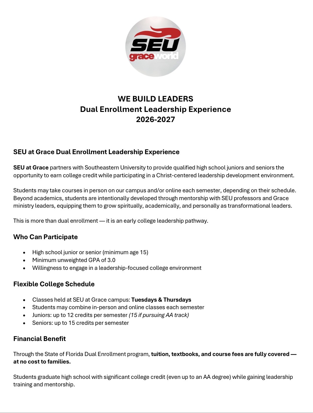 Home Circle Supports: Dual Enrollment Free with Southeastern University